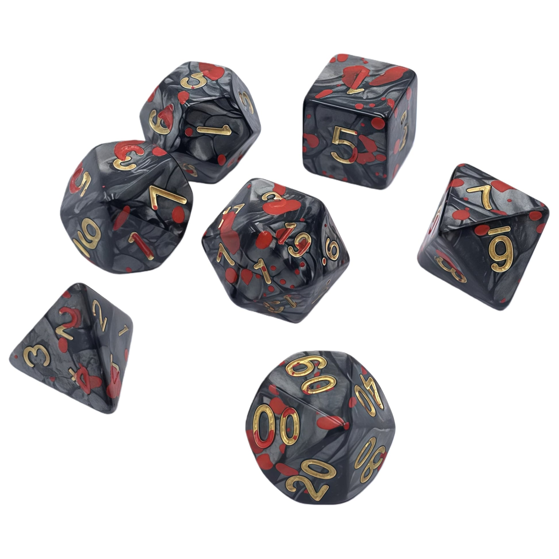 Acrylic Dice Pearl Black Pearl Blood Splatter Polyhedral Pearl Black Pearl Blood Splatter Polyhedral