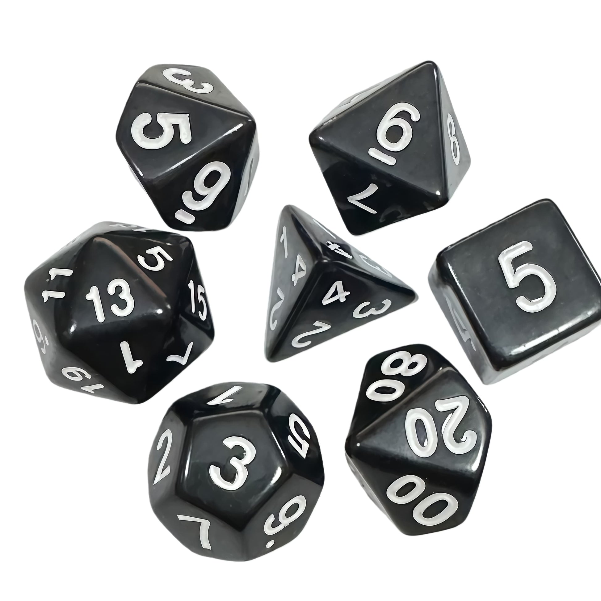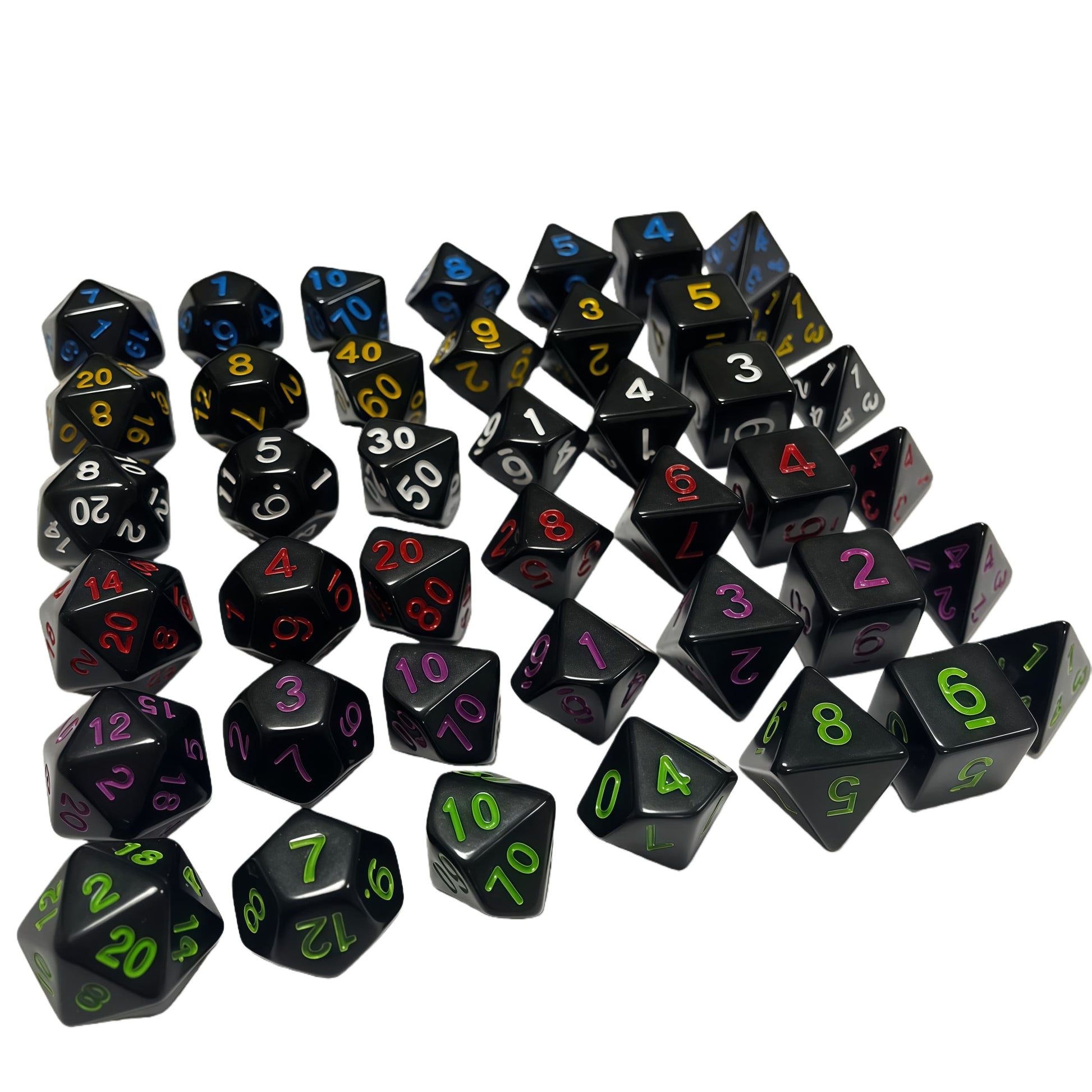 Acrylic Dice Solid Black with Colorful Inked Polyhedral DnD D&D Dice Set
