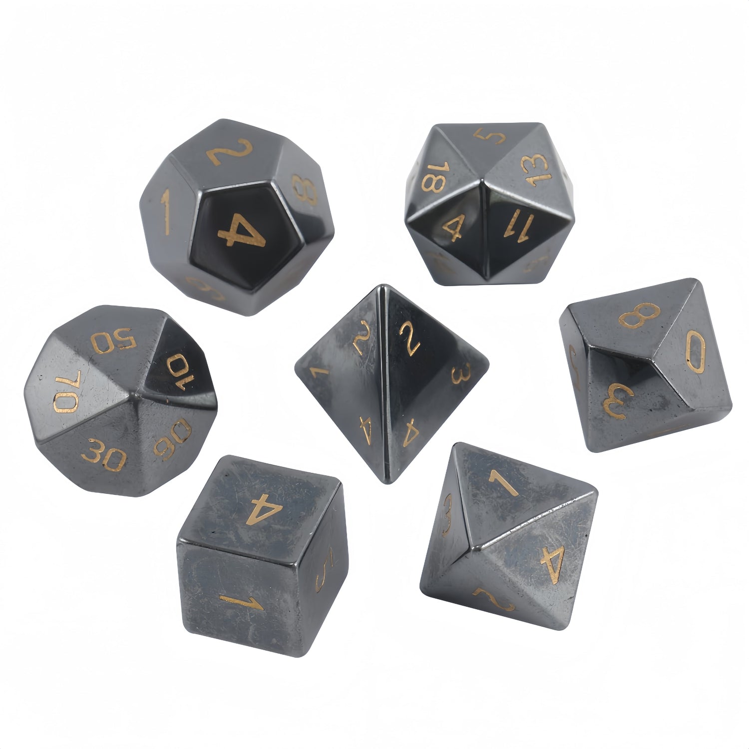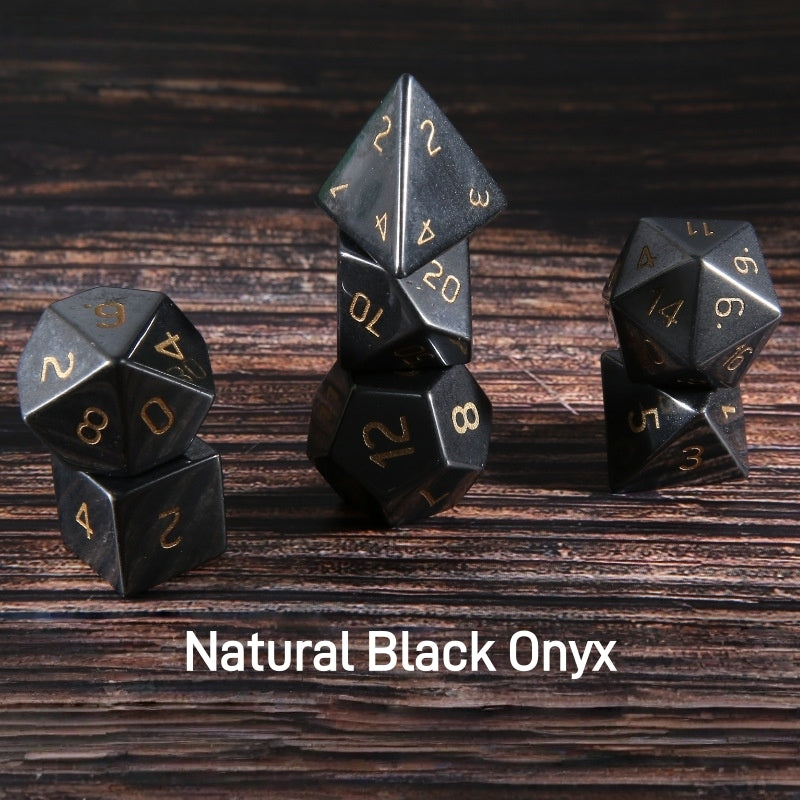 Each dice set is crafted from solid natural stone, mineral, or glass-based material.
